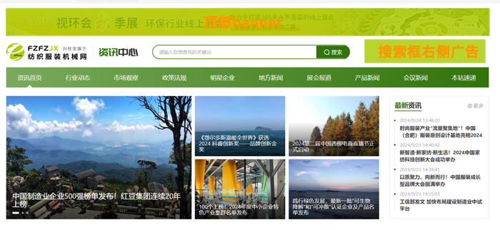 紡織服裝機械網(wǎng)作為紡紡織機械行業(yè)專業(yè)網(wǎng)絡(luò)媒體,已經(jīng)成為了越來越多企業(yè)非常重要的網(wǎng)絡(luò)宣傳平臺,尤其是中國紡織服裝網(wǎng)的首頁圖片廣告已成為一個企業(yè)實力的象征,可以非常顯著的提升企業(yè)形象、企業(yè)品牌和知名度,備受業(yè)界同行的關(guān)注,為企業(yè)帶來良好的社會效益和經(jīng)濟效益。